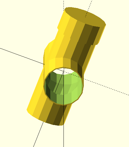 > You might think this would work, but of course it doesn't because the hole isn't part of the definition of the pipe, and so pipe A's walls block pipe B, and vice versa. If the holes were "negative objects", then pipe A's hole would cut both pipe A and pipe B, and pipe B's hole would cut both B and A.