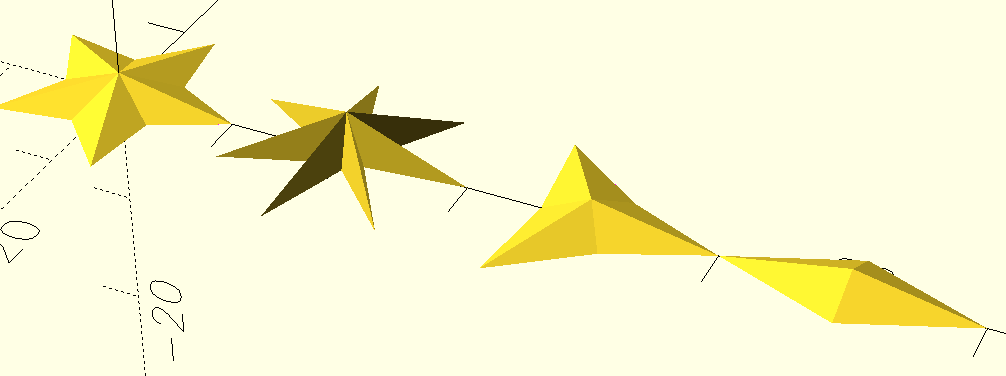 translate([20,0,0]) star3d(n=7, ir=2, h=4);