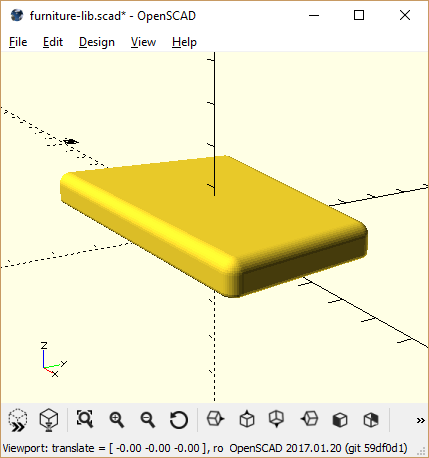 module cushion(l, w, t, l1, l2, w1, w2, top_r=1inch, bot_r=1inch, corner_r=2*inch) {