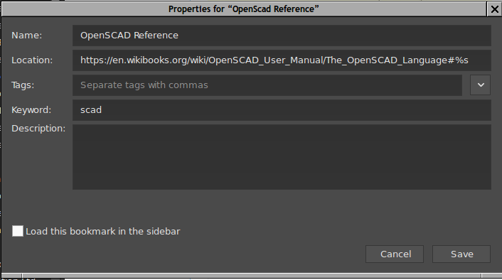 Then open the bookmark properties and in the Keyword field, enter "scad"