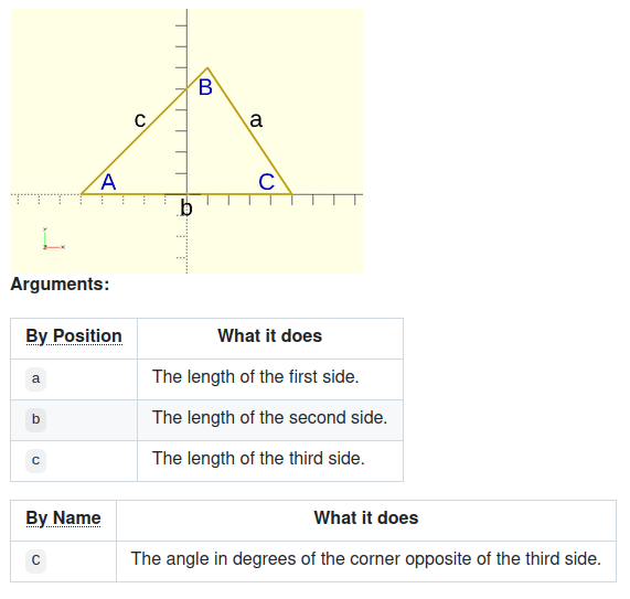 I tried the BOSL2 law_of_cosines() and I'm getting results that are