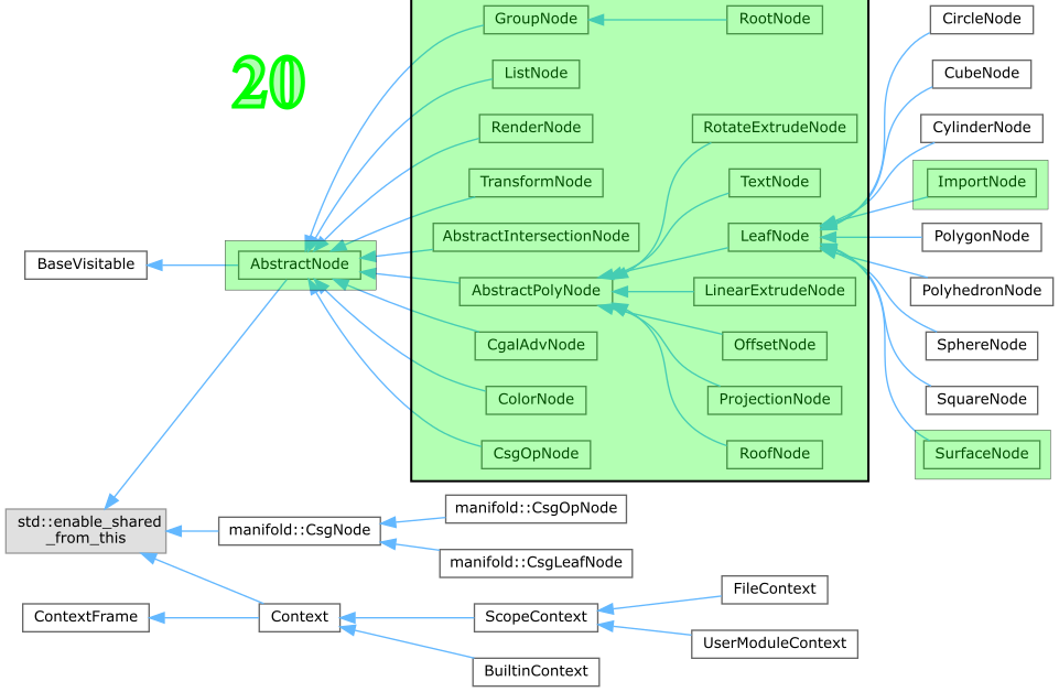 I wonder how many node types are there in OpenSCAD? Are they all defined in node.h, NodeVisitor.h, and node_clone.cc?