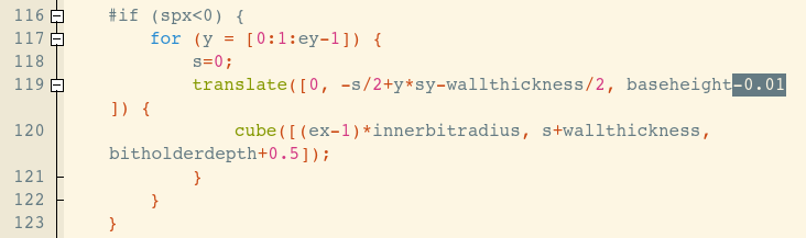 I'm modifying a file from ThingVerse, and have run into an odd problem.