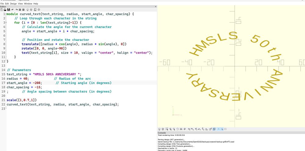 character. Openscad responds quickly enough that it can be tested as you