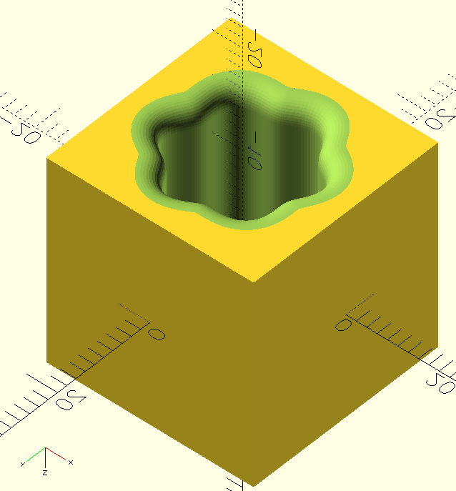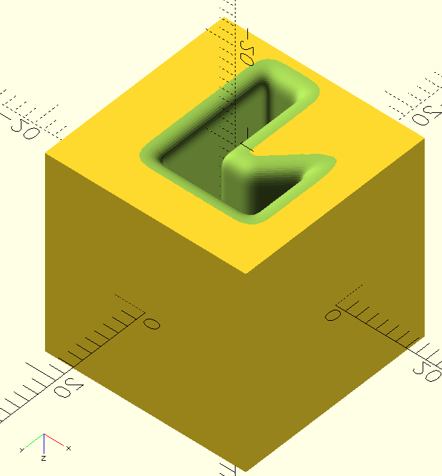 Adrian, when I run this code snippet, it produces the cube with the hole and rounding in it, but I get the error "Warning: variable "extra" not specified as parameter", and of course there is no lengthening of the cylinder to stop the z-fighting. Try as I might, I can find no examples of the use of extra anywhere, so can you explain what is wrong please?
