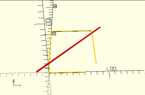 color("red") translate([-20,0,0]) rotate(45)cube([170,2,2]);