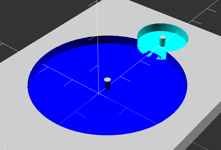 translate([fr, 0, 2]) color("Blue") cylinder(r=r2, h=cube_h,