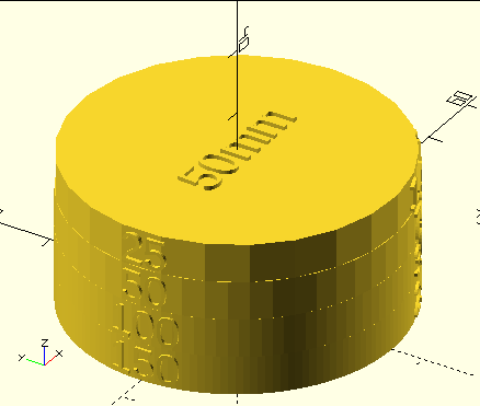 > up(len(sides)*layerT) text3d(str(d, "mm"), atype="ycenter", anchor=BOTTOM, h=topTextT, size=topTextSize);