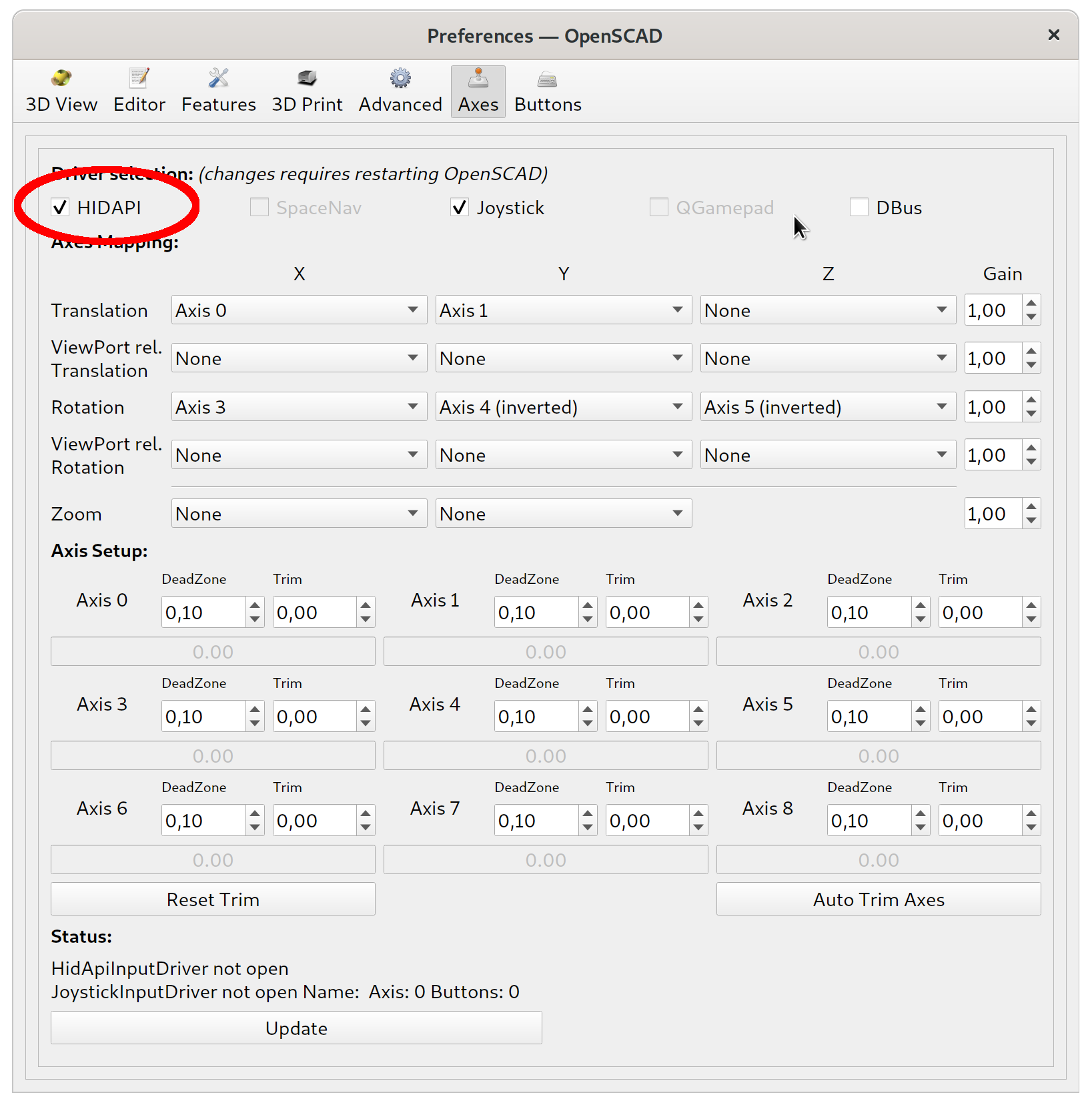 of 3DConnexion Space Mouse devices (and restart OpenSCAD).