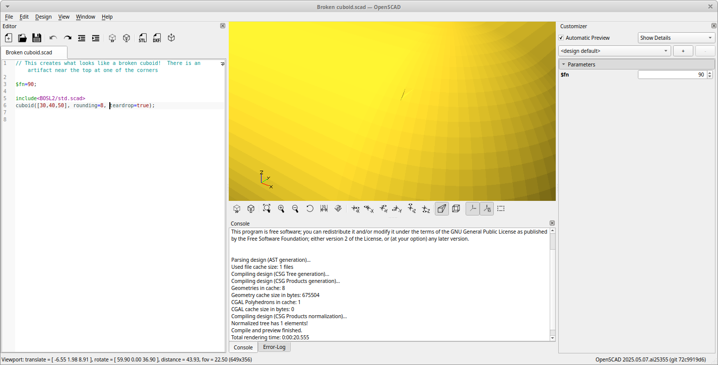 I just saw an interesting thing in the BOSL2 cuboid; the code I used was