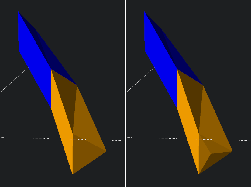 While adding such "pyramid join faces" may seem like a little bit of extra work, even with such tricks, CGAL will still create many undesirable artifacts, in the form of small near-zero-area facets. I have done a study of a specific case of this, please see https://sourceforge.net/p/stl-ops/code/HEAD/tree/cases/openscad/screw-fragment/ which has a README file explaining the matter in great detail. The sample code which exposes the problem is concise and simple to understand, by design.
