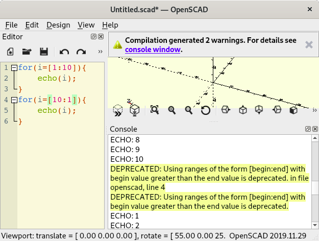 OpenSCAD users better and detailed warnings and error messages. However
