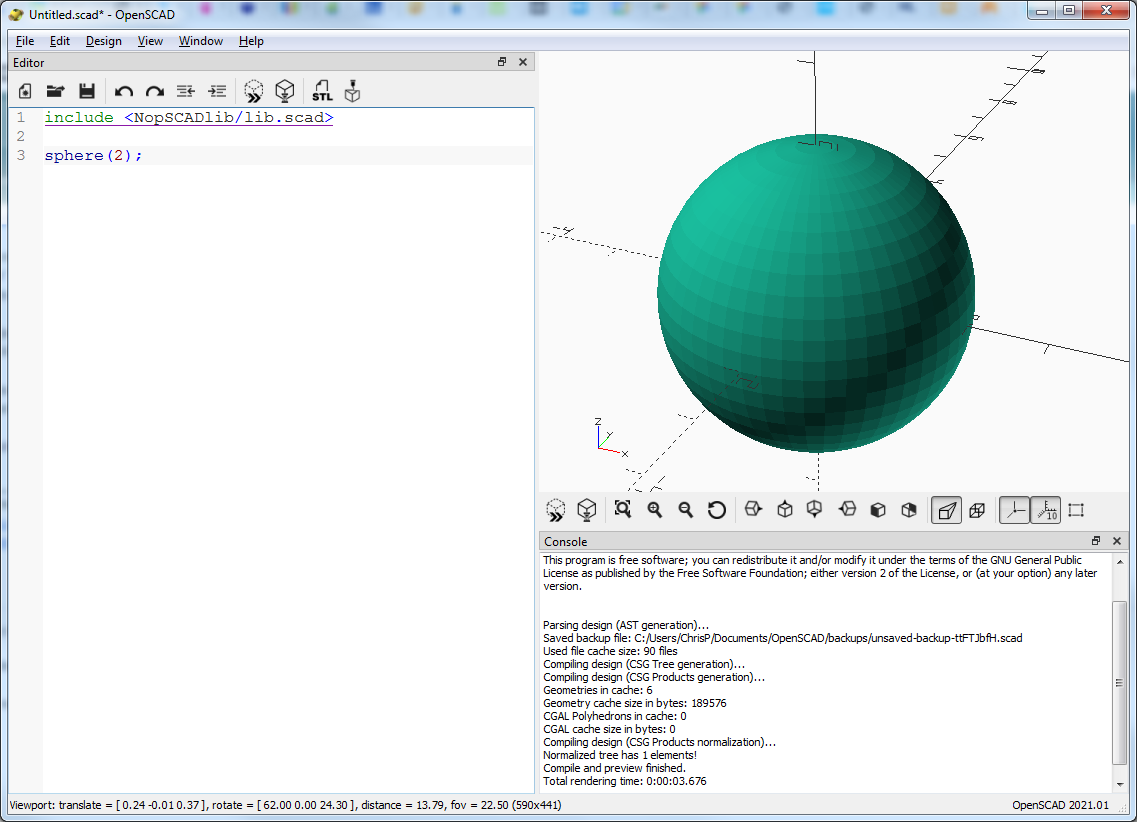 Write some OpenSCAD code with spheres, save it to an .scad file and run