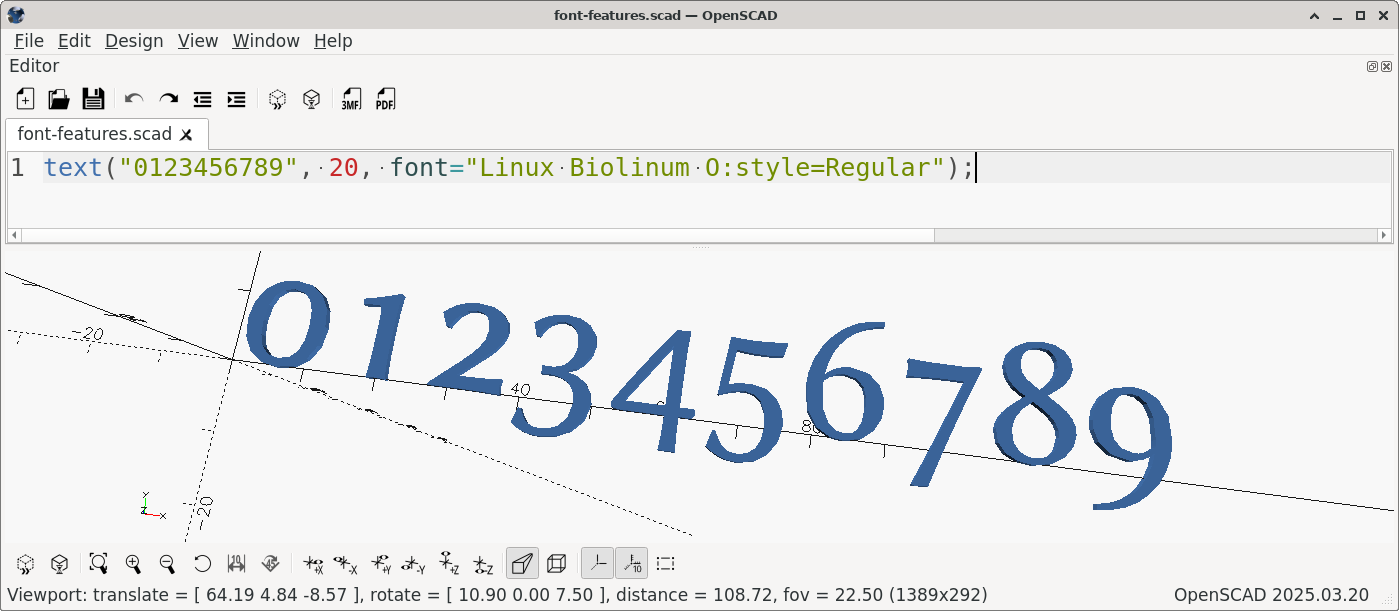 font features enabled in OpenSCAD. But I couldn't find anything in the