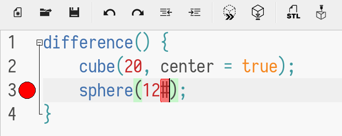 The OpenSCAD editor used to put a pink marker at the position of a syntax