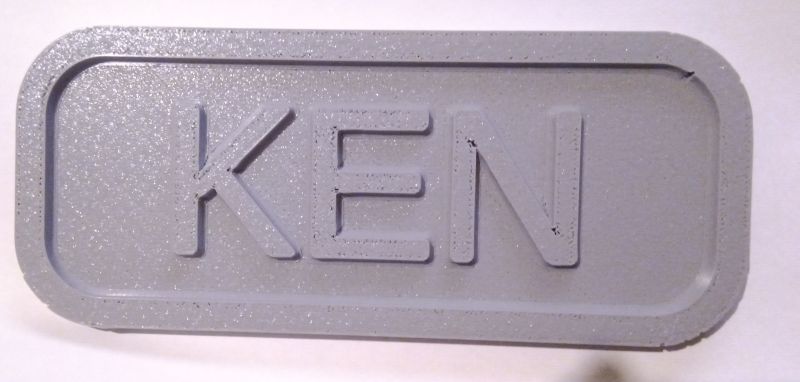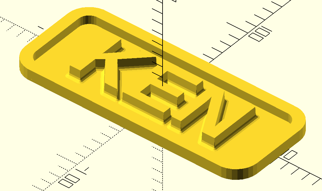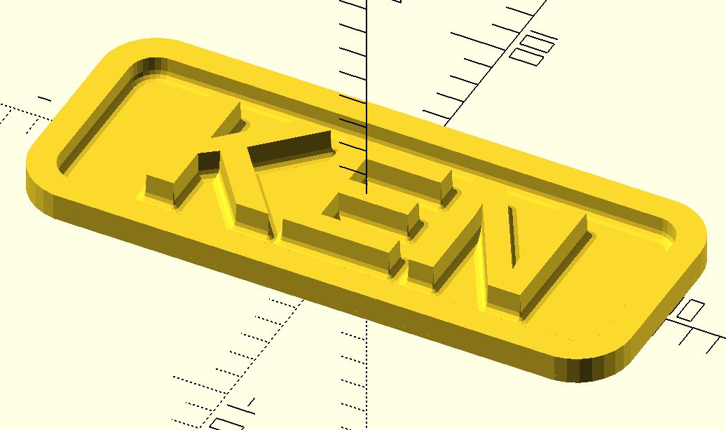 plaque("KEN", height=10, fillet=3, ang=3);