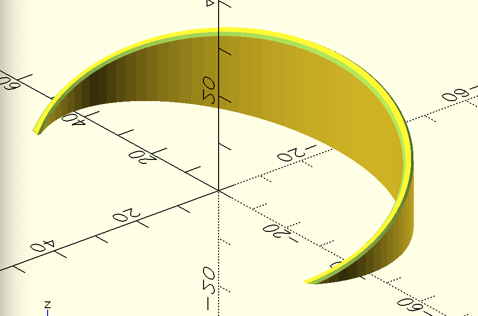 rotate_extrude(angle=180,convexity=10)translate([10,0])circle(d=wall); // same cylinder bent in semicircle