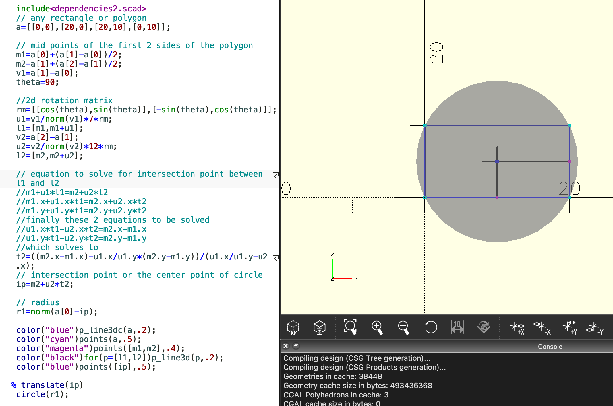 > calculate circumcircle for polygon given number of flats, n