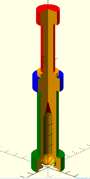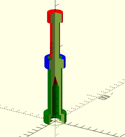 parts. I colored each and then cut into the assembly with a difference()