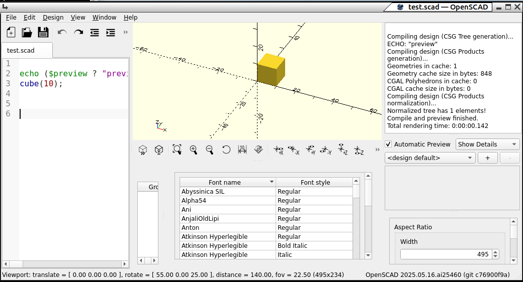 click the SCAD file, but does not preview when I load OpenSCAD and