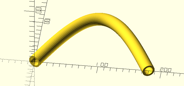 > You can use rotate_extrude maybe, if you can use a circular bend. If you want something fancier, I recommend BOSL2's path_sweep function, which can generate a cylindrical extrusion that follows any 3d path.