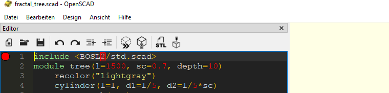 > At least i now get a big red spot next to the line include <BOSL2 ...