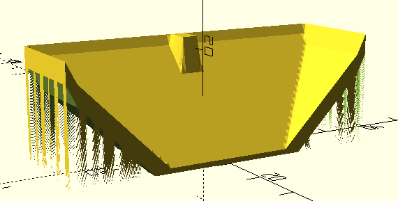 Funny, but scale didn’t seem to work. I tried scale([1.1, 1.1, 0]) and seemed to completely lose my bottom edge. I got the whole thing - oh, crud. I bet I did do 1.1, 1.1, 0. That would flatten it to a flat plane at the bottom, wouldn’t it? That’s what I got. Shoot.