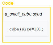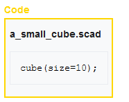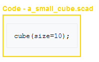 but do not have a title ("Code") or file name ("a_small_cube.scad").