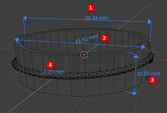 > it to be *2.16mm* (*#4*) but when measured (Using Blender it's *1.25mm*)
