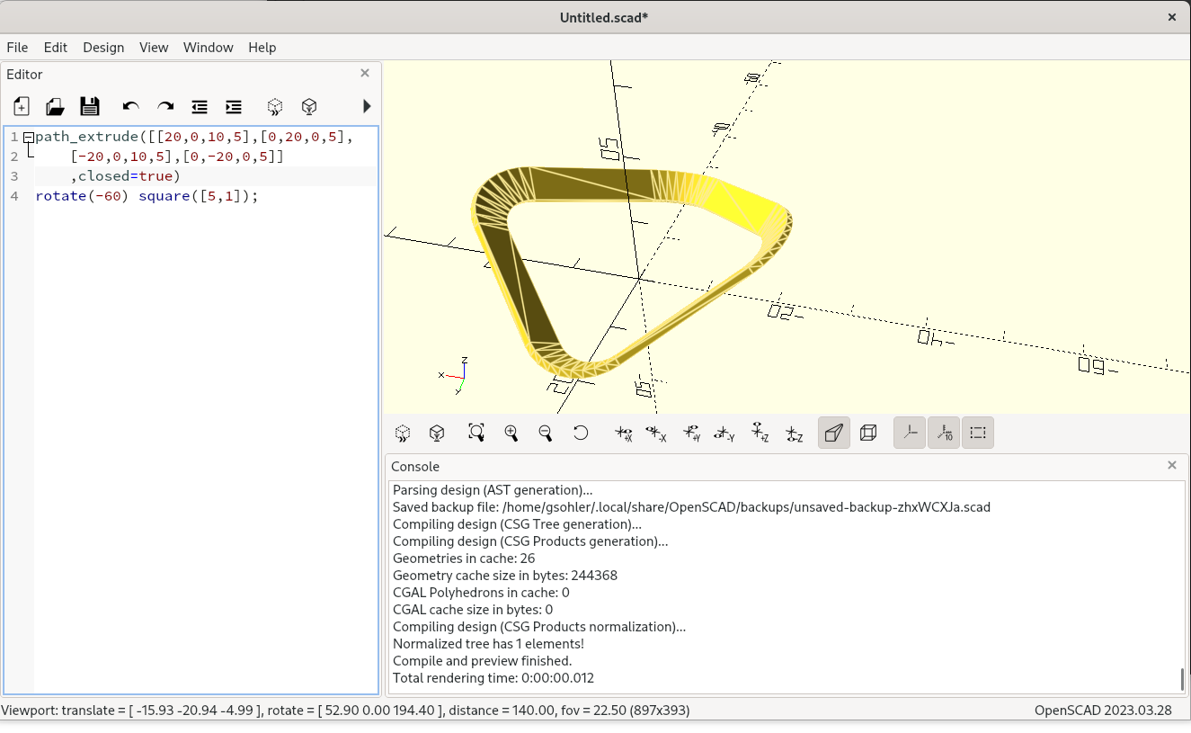 >>>> I don't think there is any path extrude in openscad.