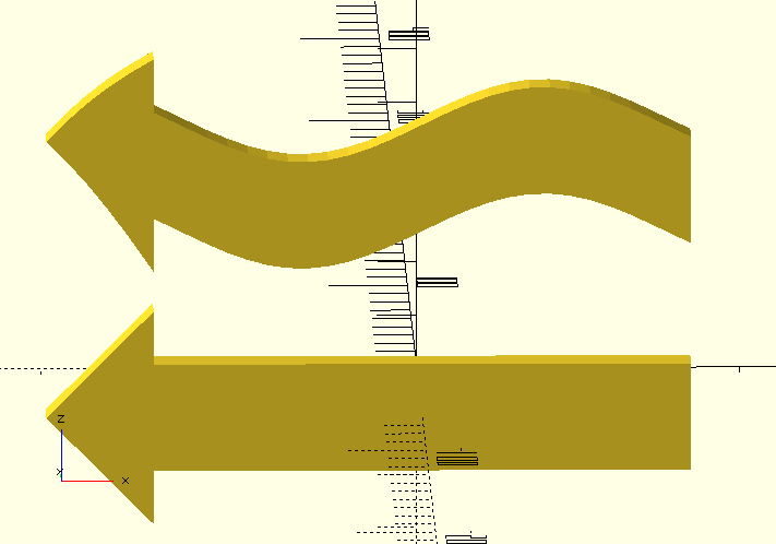 Which produces the distorted wiggly arrow at the top from the straight