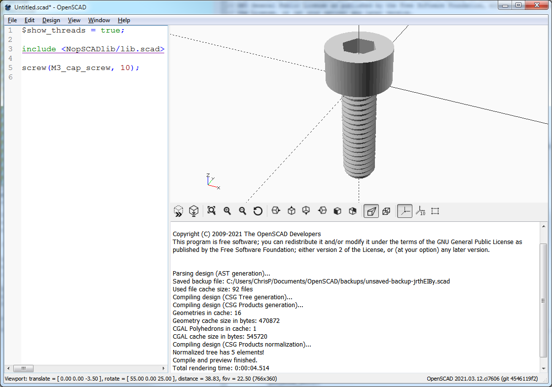 Printer\OpenSCAD\LIBRARIES\NopSCADlib\vitamins\screw.scad in the GUI,