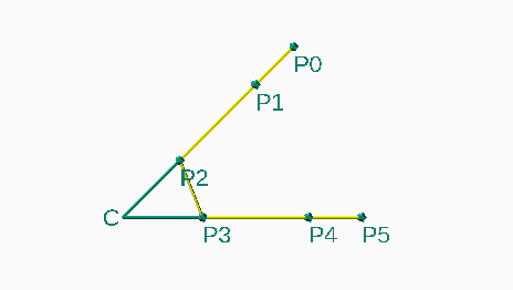 // [p0,p1] at p0, tangent to [p1,p2) at p2 and