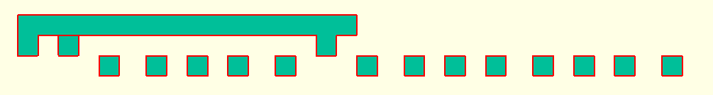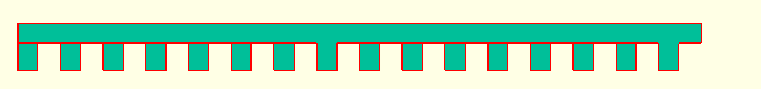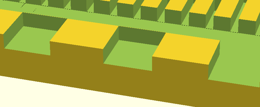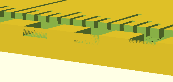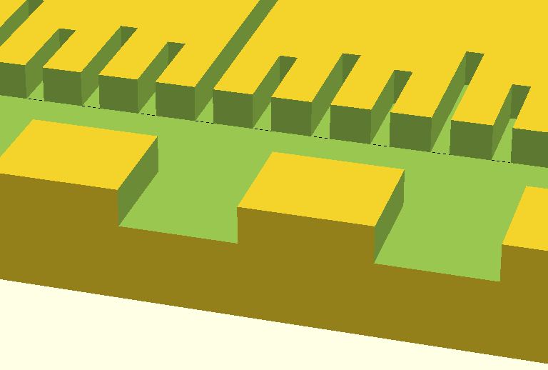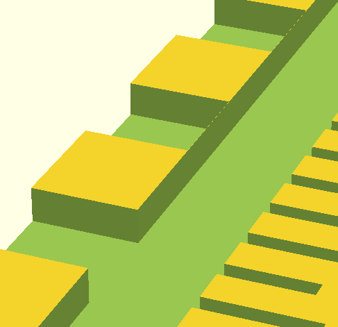 xcopies(mk4,l=len-4, sp=[0,-6,0]) fwd(1) square([3,1+3]) ;