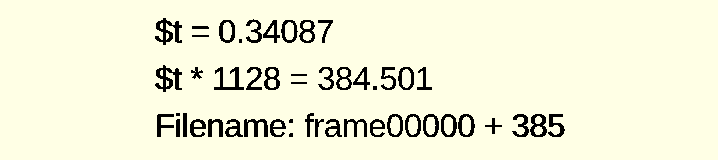 color("black") text(str("Filename: frame00000 + ",round($t1128)));Can