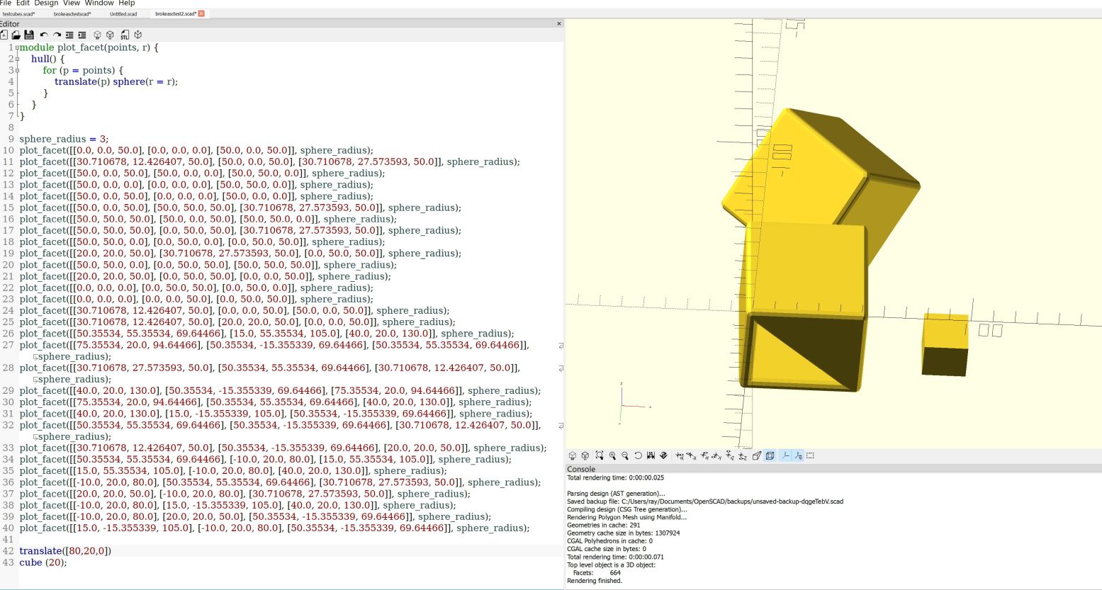 >>> import("P:/Docs/openscad/brokeasctestcubes.stl");