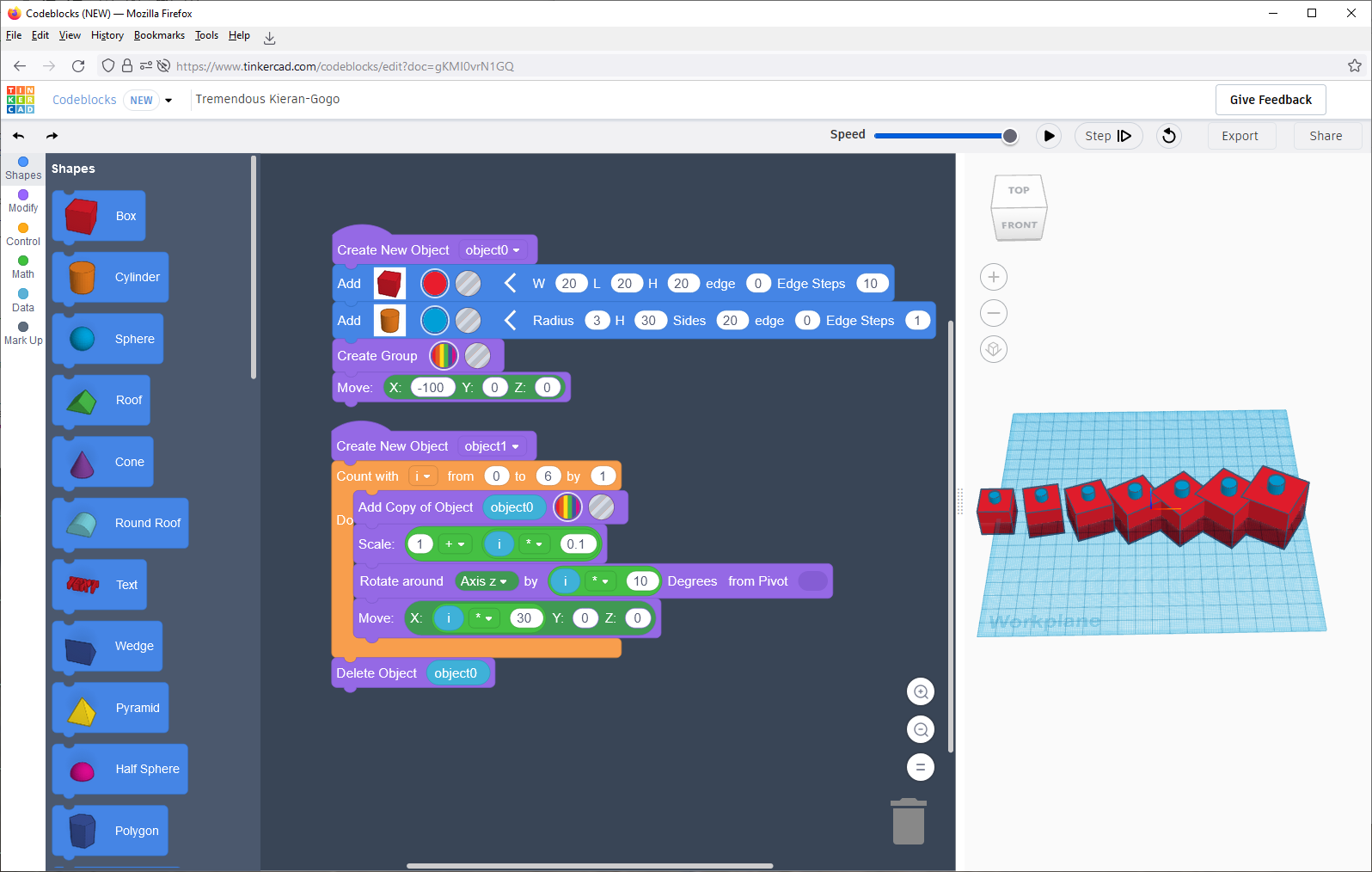 If you want to see what it would look like in the other direction, where you create an object and then move it, give TinkerCAD's block-code scripting tool a try. It's AWFUL. You're basically scripting things that you could do with your mouse, and without the convenience of being able to enclose multiple objects in an operation or perform operations like rotation relative to a global coordinate system, it's a lot more work to get anything done than if you were just using the mouse to do it.