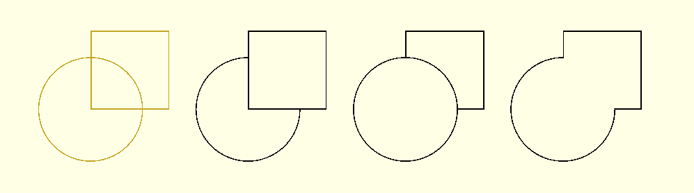 The attached image shows different combinations of your square and circle that can be done with OpenSCAD.