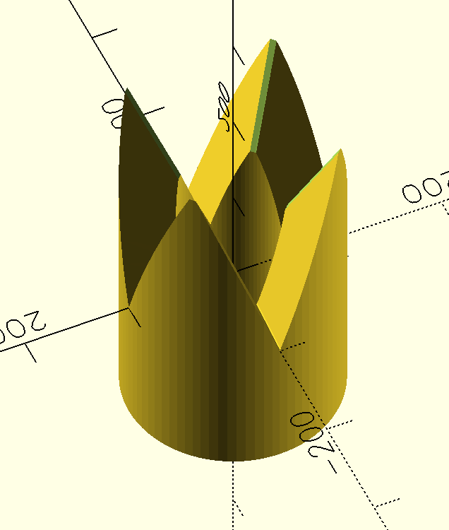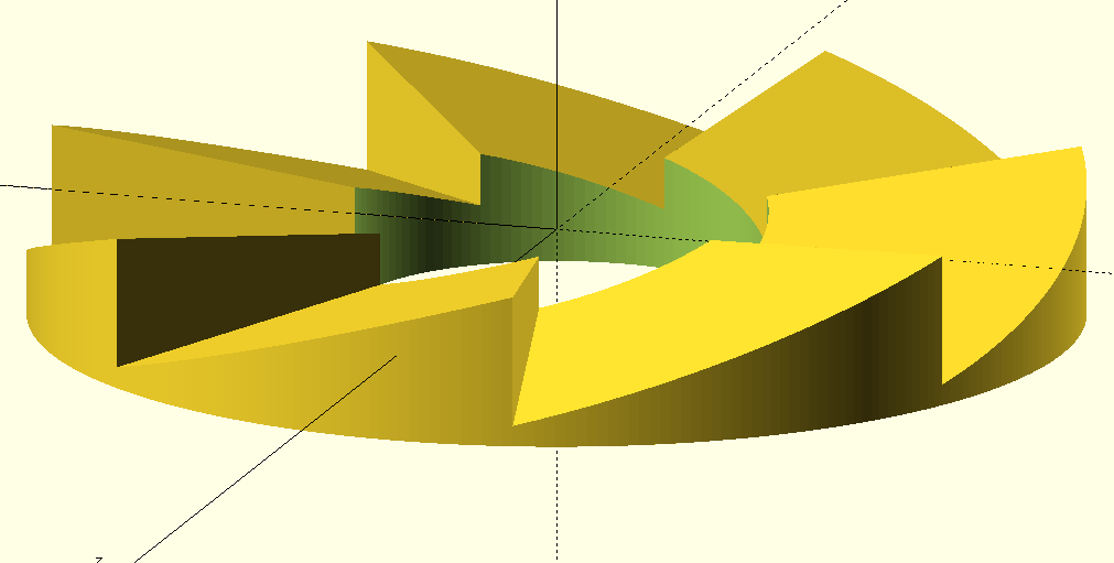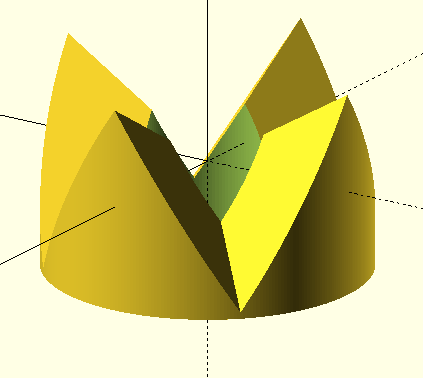 > > In the image below, 60° triangles parallel to the z-axis linear_extruded