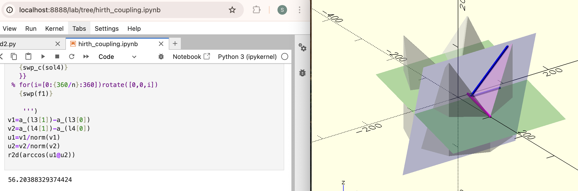 > My model is based on three 60° triangles linear_extruded down to the