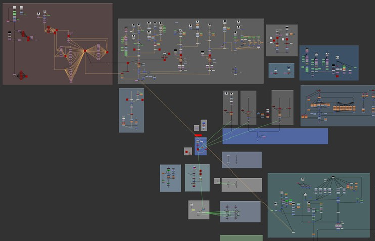 I know that OpenSCAD is a "CAD" program, but I got into it in order to make art. In the 3D computer graphics business, the most popular interface for programming languages aimed at artists is "node and wire" syntax. For example, Blender has this.