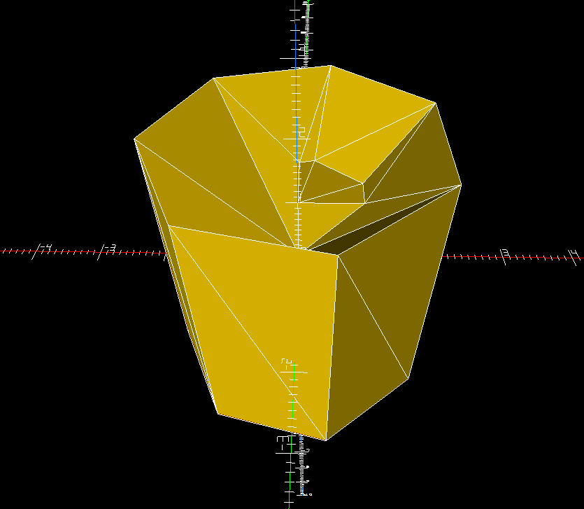> the end result is the same as via OpenSCAD, 14 faces and 9 vertices.