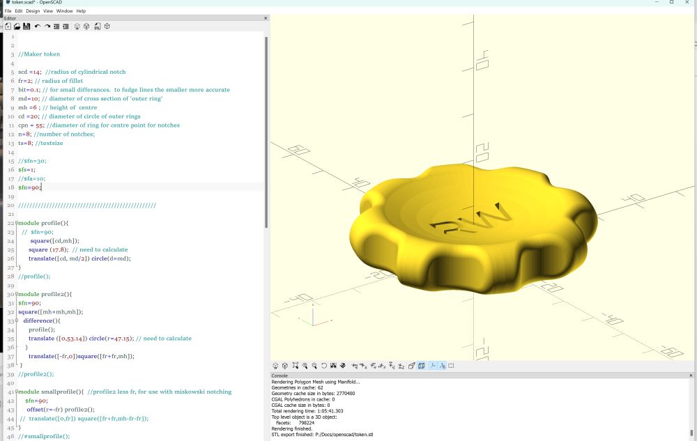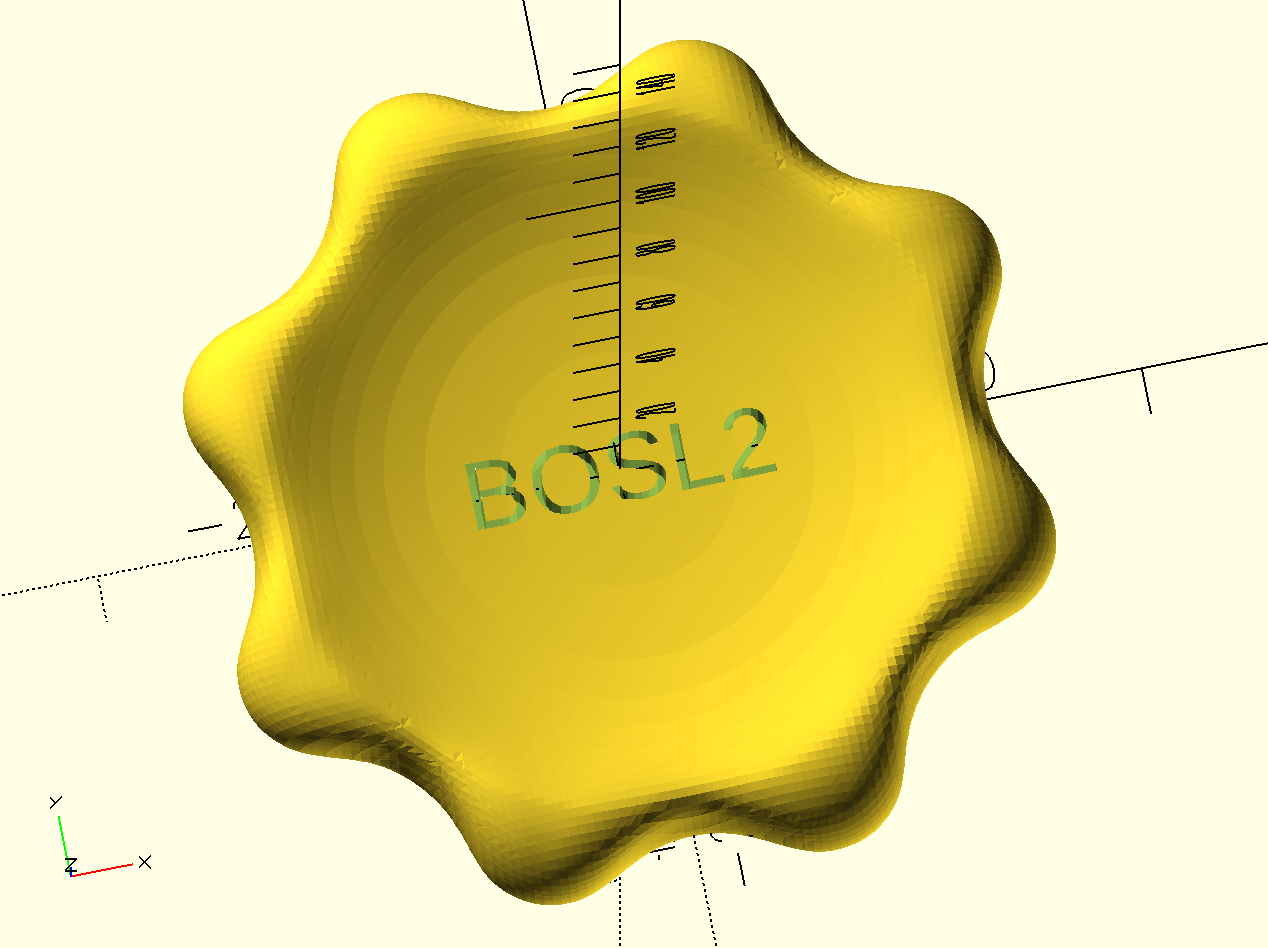 > BOSL2 library for OpenSCAD. The version pictured is an F6 render that
