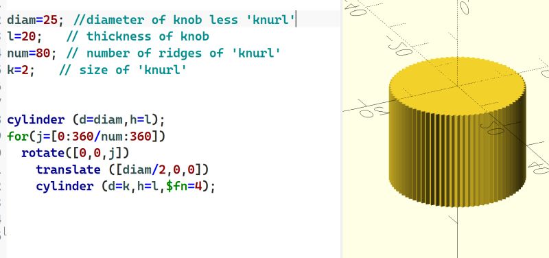 rK = PI * rKnob / ((knurlPitch + 1) * knurls + PI);